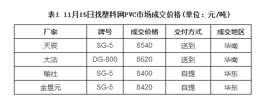 今日華南地區(qū)PVC市場價格繼續(xù)拉高,場內貨源不多,多數(shù)商家預售12月、17年1月份月份貨源。普通5型電石料主流成交價8450-8560元/噸自提。乙烯料價格繼續(xù)堅挺,主流8550-8700元/噸自提。