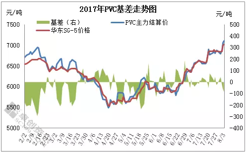 對于接下來的PVC行情,市場人士多比較樂觀,先從供應面來看下。2017年環(huán)保及安全檢查力度加大,重視度可謂是前所未有。一些因生產(chǎn)事故問題導致的停車裝置不會再像往年那樣只是走走形式便很快復產(chǎn)。另外,西南幾家企業(yè)也因當?shù)丨h(huán)保及安全檢查導致原料供應不足,開工陸續(xù)出現(xiàn)下降,四川金路、成都華融PVC企業(yè)安排8月中旬停車檢修。再則,西北企業(yè)中吉蘭泰、英力特PVC裝置8月份也有檢修計劃。還有一點就是高溫影響,少數(shù)PVC企業(yè)開工負荷出現(xiàn)5%-10%的下滑。而8月內(nèi)蒙古70周年大慶,作為電石及PVC的主產(chǎn)地,開工及運輸都會受到不同程度的影響,供應面影響如何尚是未知數(shù),但也給市場人士留下可想象的空間。近期期貨價格的大漲,有市場仍是認為是逼空的調(diào)調(diào),這個暫且不予評論,但PVC增倉明顯,理論上空單占據(jù)一半,也就是有6-7萬噸的現(xiàn)貨短期不能賣了。