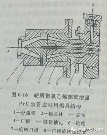 上圖中A是軟質(zhì)PVC熔料進(jìn)口B是硬質(zhì)PVC熔料進(jìn)口