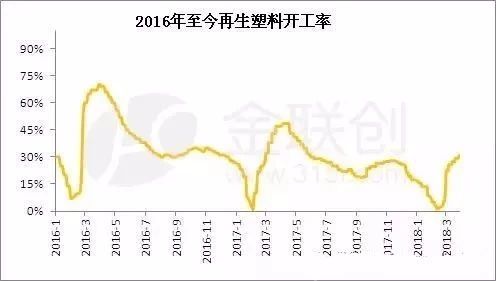 2018年來原料與再生料價差繼續(xù)收窄,部分時段價差在300-500元/噸,新料與再生料價格影響力明顯減弱,再生料市場供需博弈,因廢塑料進口量大幅下滑,加之整頓因素,再生PE貨源不多,市場報盤堅挺。
