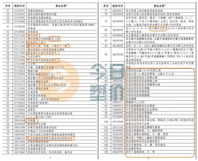 小編統(tǒng)計(jì)了下我國(guó)對(duì)美化工品、能源產(chǎn)品等108項(xiàng)商品征稅里,和化工材料有關(guān)的占比近40%,而大家最關(guān)心的PC、PA、PE、PVC等原料以及丙烯、乙烯、丁二烯、丙烯腈、環(huán)氧樹(shù)脂等原材料上游單體均在名單內(nèi)。