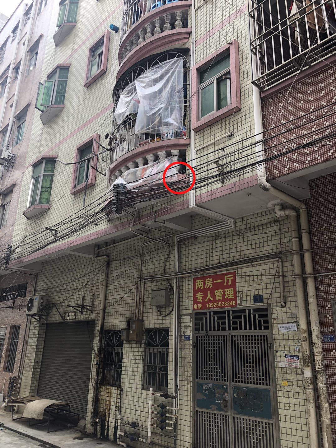 趕到現(xiàn)場之后,他們發(fā)現(xiàn)男嬰卡在二樓電線上,雙腳亂蹬,一直在哭,隨時都有掉落的危險!