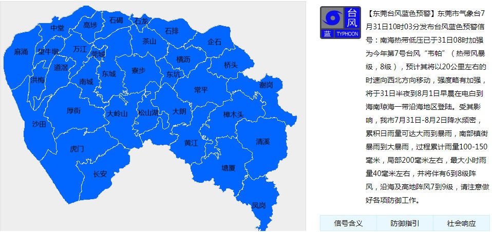 東莞首次發(fā)布臺風(fēng)藍(lán)色預(yù)警